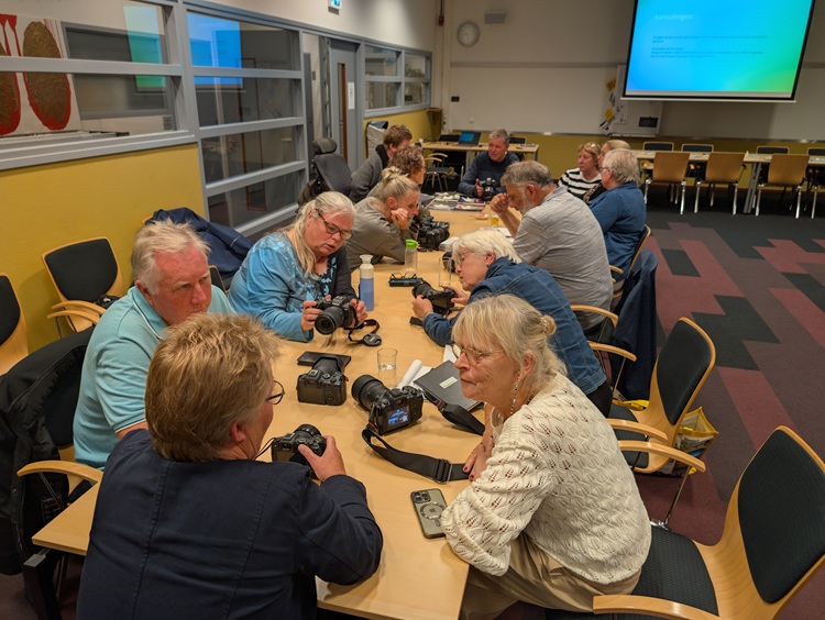 Afgelopen dinsdagavond stond in het teken van “Kennis over fotografie en camerakennis delen”. Voor de pauze een uitleg van Carla met veel links naar sites waar heel veel kennis te halen is en allerlei boeken die door de leden werden aangegeven als “erg nuttig”. Na de pauze camera-kennis delen waarbij de groepjes werden ingedeeld per camera-merk. Dat leidde tot een zaal vol camera’s en en kennisuitwisseling. Een mooie en vooral nuttige avond!
